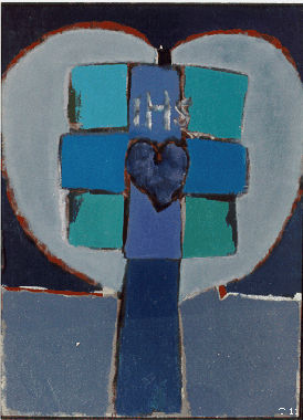 Topped by the sacred IHS monogram, the smaller central heart illustrates the Fidelio d'Amore's heart taking part to the Assumption of the Cross in his own possible way.