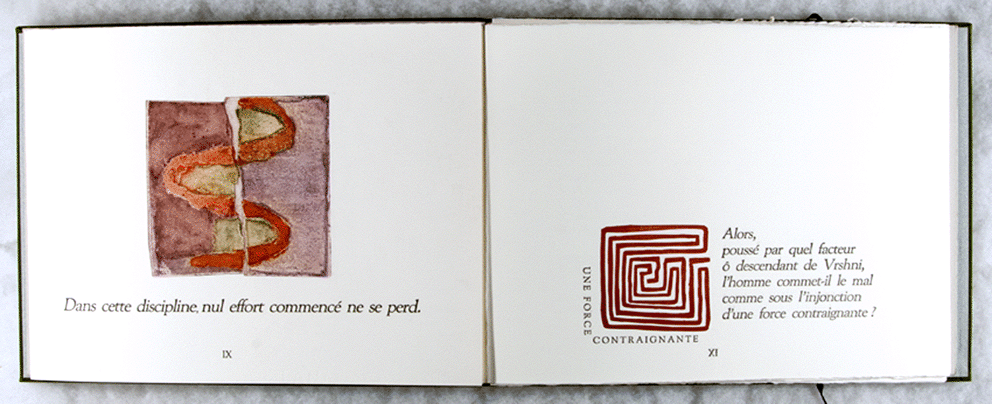 Mais au-delà de ce non-manifesté, il existe un autre non-manifesté, éternel qui, lors même que tous les êtres périssent, lui, ne périt pas. On l'appelle l'Impérissable, le Non-Manifesté; c'est Lui qu'on proclame être le but suprême. Quand on l'a obtenu, on ne renaît plus. C'est mon suprême séjour. VIII,18-21