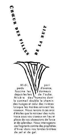 Gilles Alfera n'a pas voulu déranger leur ordonnance par quelques "inventions" nouvelles qui leur seraient plaquées. De dalle en dalle il a suivi leur chemin, il a juste posé des couleurs pour dire les portes, les centres et les flux de chaque composition accompagnée de mots empruntés à Antoine de Vial: incises tirées de ses " Graffitis " jetés là, sur la pierre, pour apaiser un peu la violence du désir de "comprendre".
