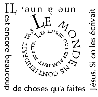 Il est encore beaucoup de choses qu'a faites Jésus. Si on les écrivait une à une, le monde ne contiendrait pas les livres qui en serait écrits.