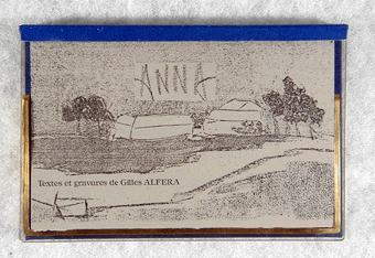 ANNA troisième recueil de gravures et de textes de Gilles Alfera a été tiré sur 44 exemplaires pour la suite et 10 hors commerce dont un fut déposé en juin 1986 au Cabinet des Estampes de la Bibliothèque Nationale de Paris.