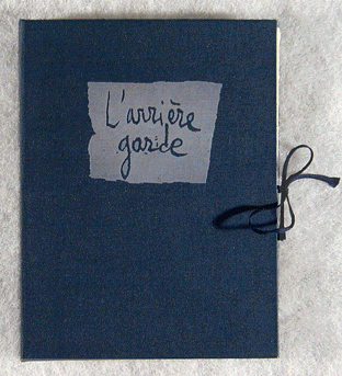 L'Arrière-Garde a été tiré à la main sur Velin d'Arches par l'auteur et l'artiste sur les presses de l'atelier 77, Grande Rue à Neauphle-le-Château. Un exemplaire a été déposé à la Bibliothèque Nationale de Paris en avril 1988. La suite comporte 60 exemplaires auxquels s'ajoutent 15 hors commerce ; les Épreuves d'Artiste, au nombre de 20 sont réservées à la diffusion en feuillets séparés des 3 illustrations accompagnées pour chacune du texte qui lui correspond.